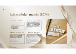 ・ECM(細胞外マトリックス)構成要素:ヒアルロン酸、コラーゲン、