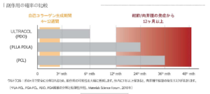 Ultracol 200(主成分:PDO)がPCLやPDLLA、PLLA製剤などと比較して肉芽腫形成などの長期的な副作用リスクが低いとされるのは、主にその分解速度、分解様式、および粒子の特性の違いに起因するとされています。