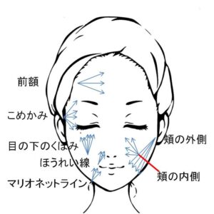 下記に代表的な注入部位を示します。使用量は各人で異なりますが、大まかな目安として、