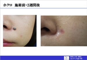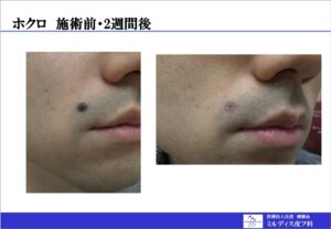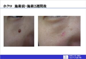 炭酸ガスレーザーを使用して、ホクロやイボなどの出来物を熱で皮膚組織を蒸散させる(削る)治療法です。