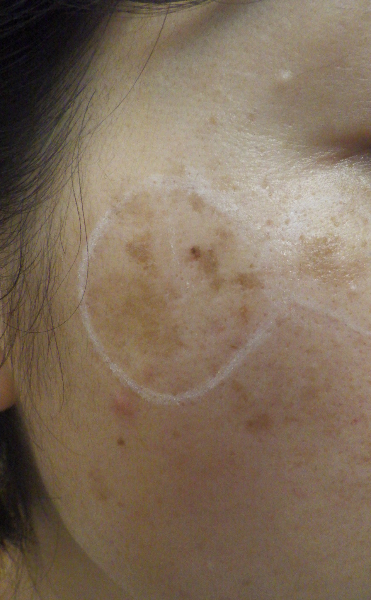 ・照射部位はテープもしくは専用コンシーラーで保護します。テープやコンシーラーの上からメイクすることができます。